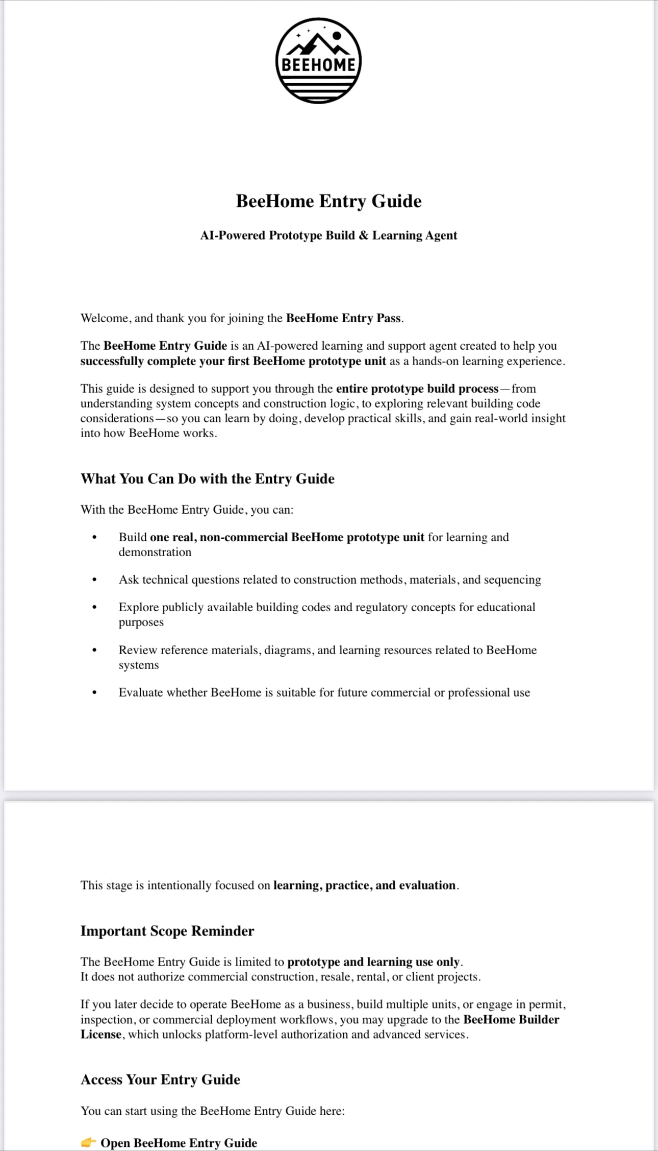 BeeHome Builder Entry Pass